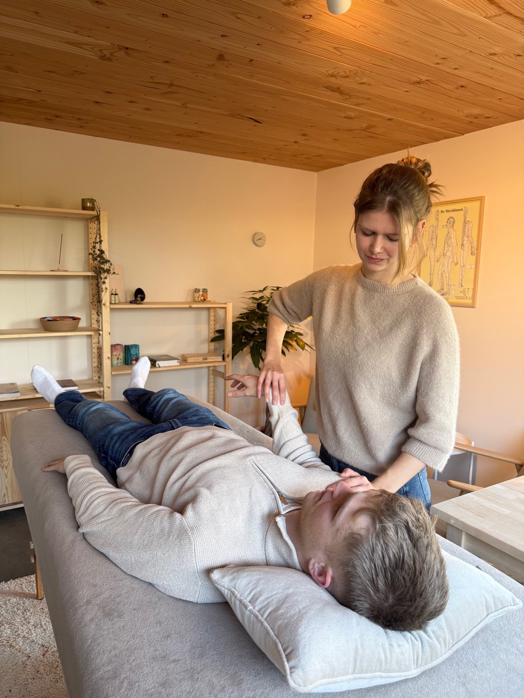 Aan het einde van de sessie bespreken we wat we hebben gevonden en welke stappen jou verder kunnen helpen. Soms krijg je een kleine oefening of tip mee voor thuis, zodat je het effect van de behandeling kunt ondersteunen.